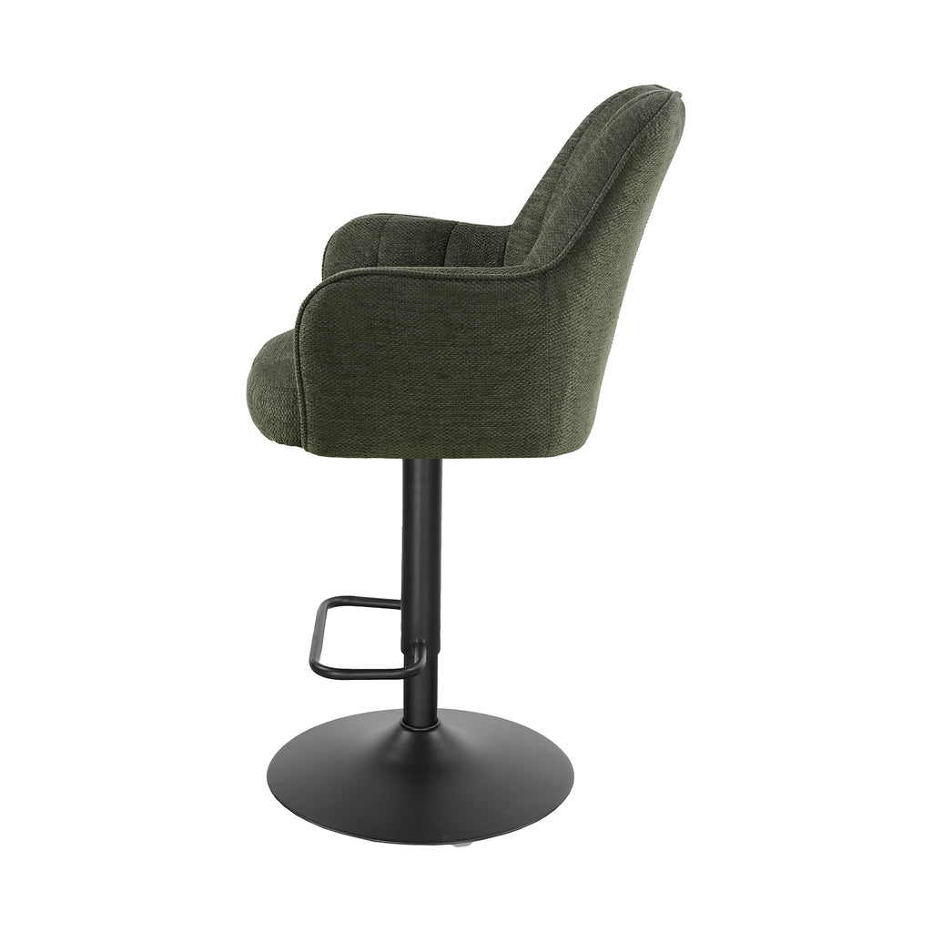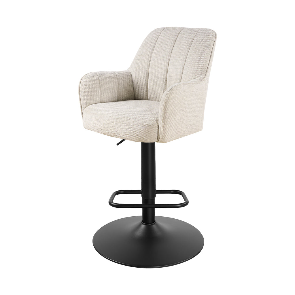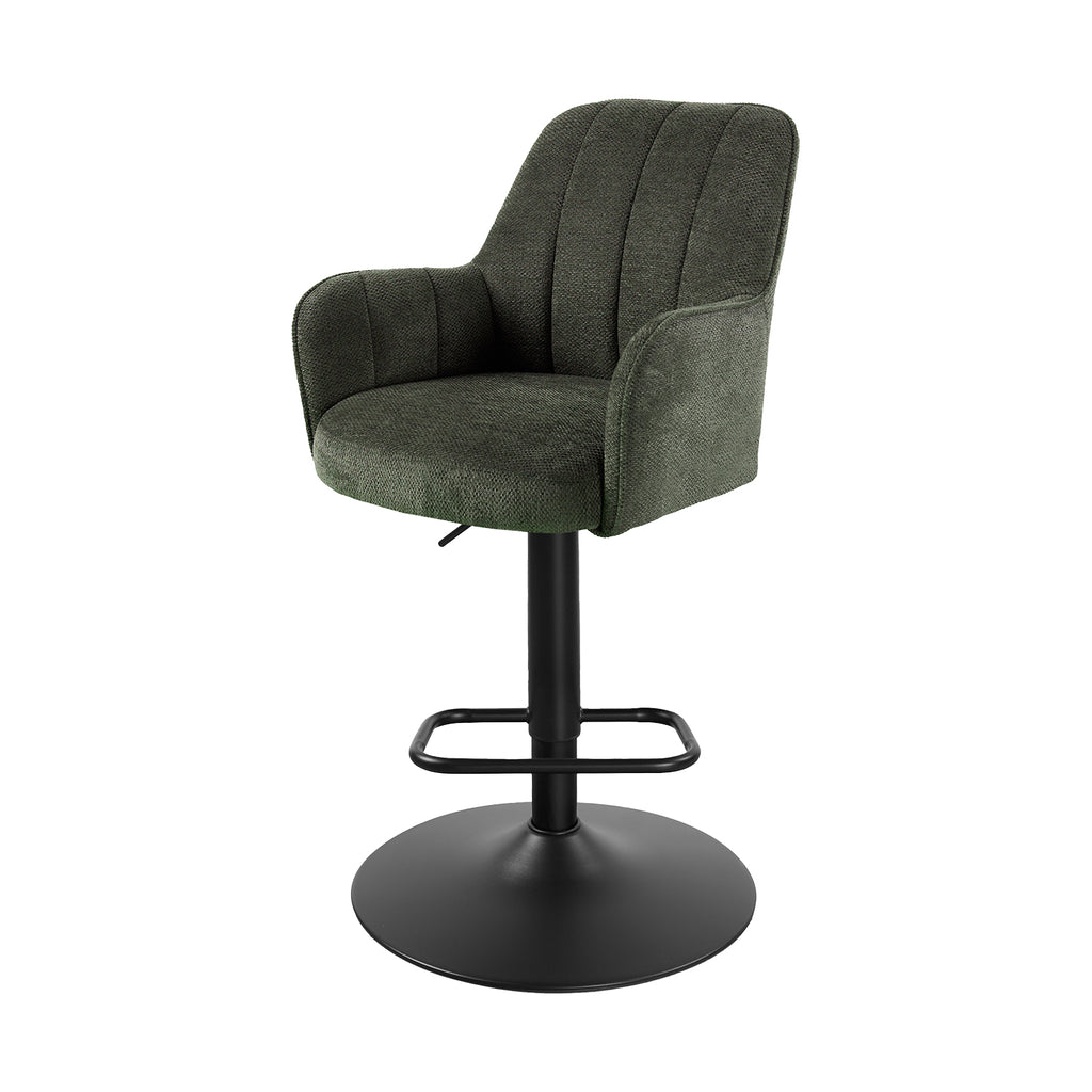 Descubre el Banco Alto Amsterdam, un asiento giratorio que combina estilo contemporáneo con un confort excepcional. Su respaldo curvado y asiento acolchado ofrecen una experiencia envolvente y ergonómica. Incorpora apoyabrazos suaves, reposapiés integrado y un mecanismo de ajuste de altura con giro de 360°, garantizando funcionalidad y estabilidad. Perfecto para barras o desayunadores, su silueta compacta y proporciones equilibradas aportan elegancia y sofisticación a cualquier ambiente. Ideal para disfrutar de comodidad prolongada con un diseño refinado y materiales de alta calidad.