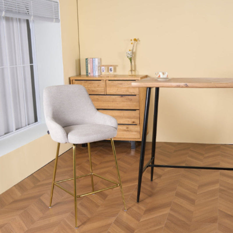 Combínalo con la Silla Galicia diseñada con los mismos acentos dorados y el estilo contemporáneo que distinguen al Banco Alto Galicia. Juntos crean un espacio moderno, armonioso y visualmente impecable, ideal para barras y comedores que buscan coherencia y sofisticación.