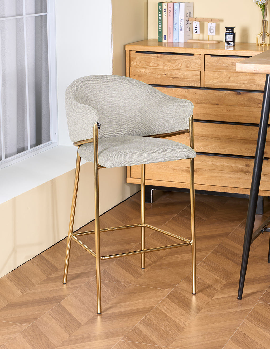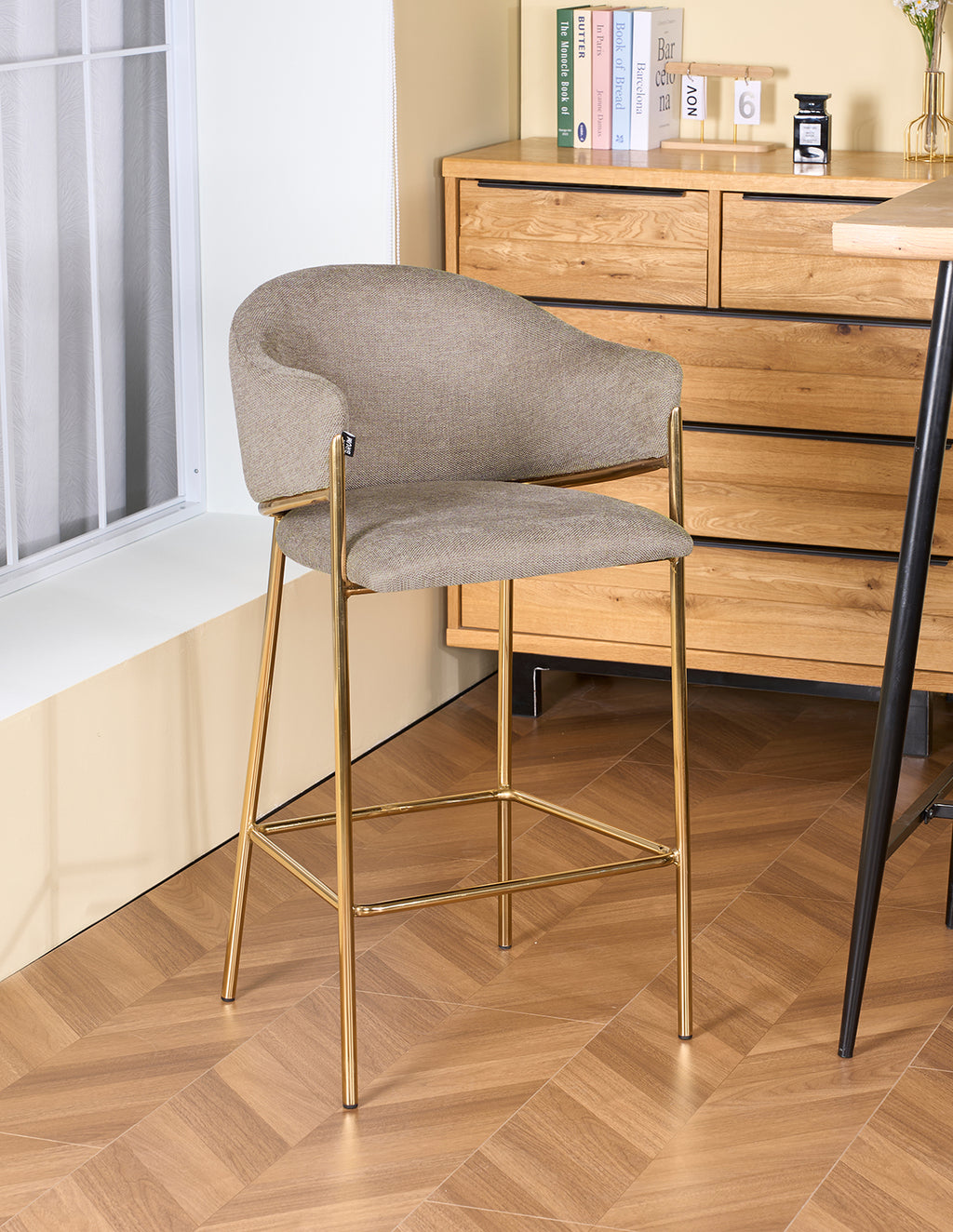 El Banco Berlín redefine la elegancia moderna con una silueta limpia y proporciones equilibradas. Su estructura metálica en acabado dorado refleja luz con sutileza, aportando un toque sofisticado que transforma cualquier barra o cocina en un espacio de diseño.