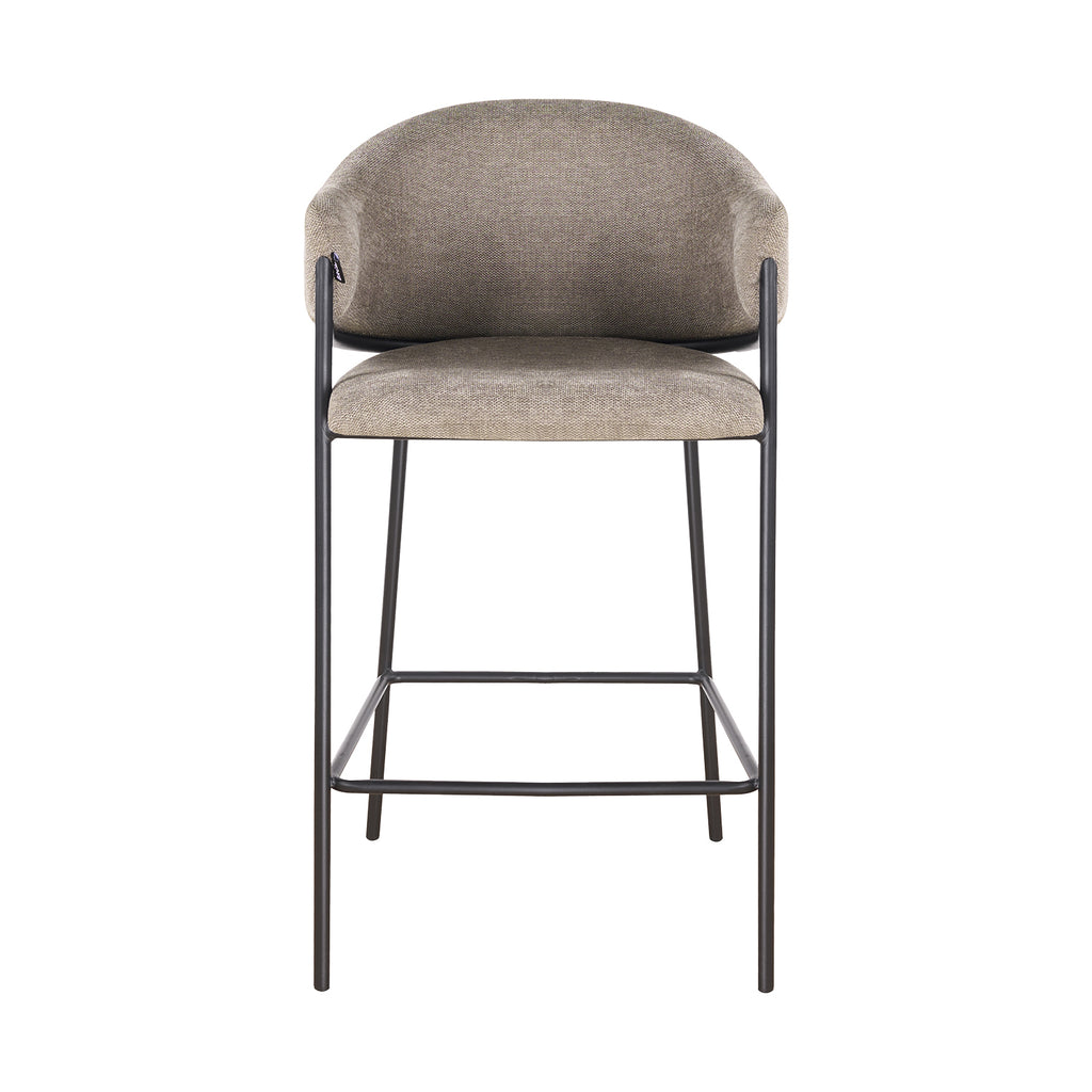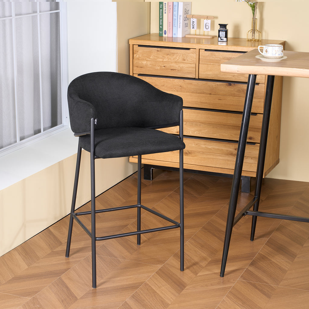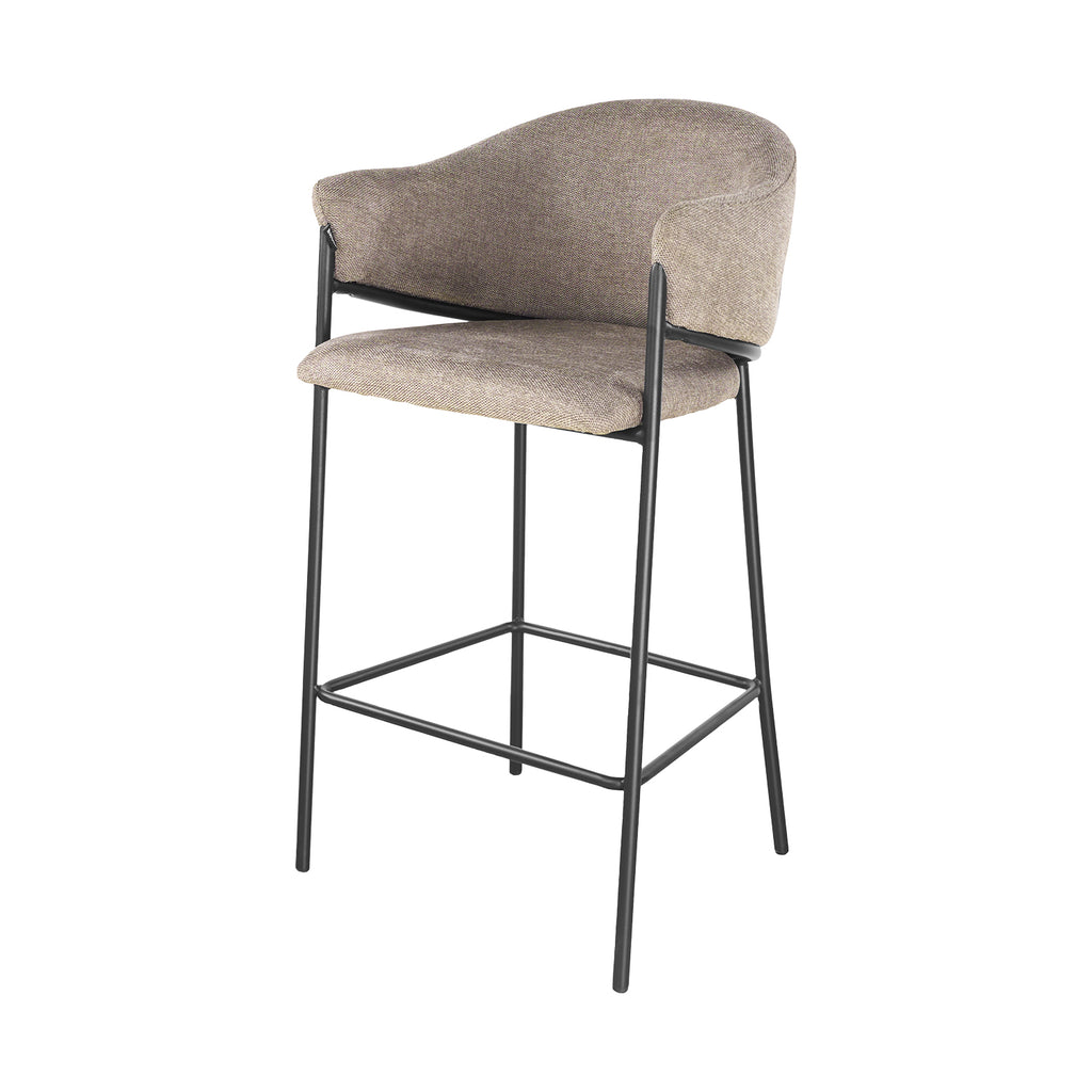 El asiento tapizado ofrece una textura suave y confortable, ideal para disfrutar de momentos largos en la barra o la cocina. Su diseño estilizado alarga visualmente el espacio, aportando equilibrio entre estética y funcionalidad.