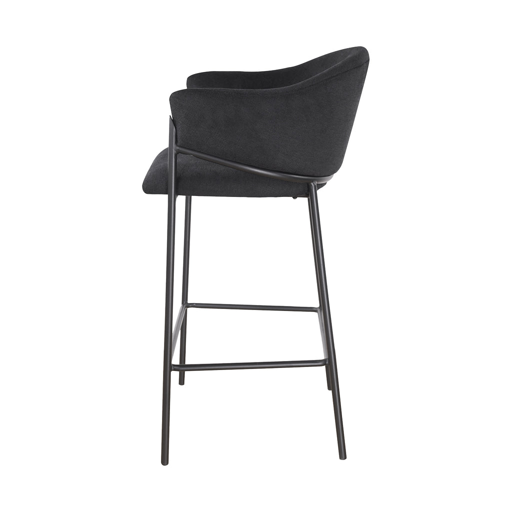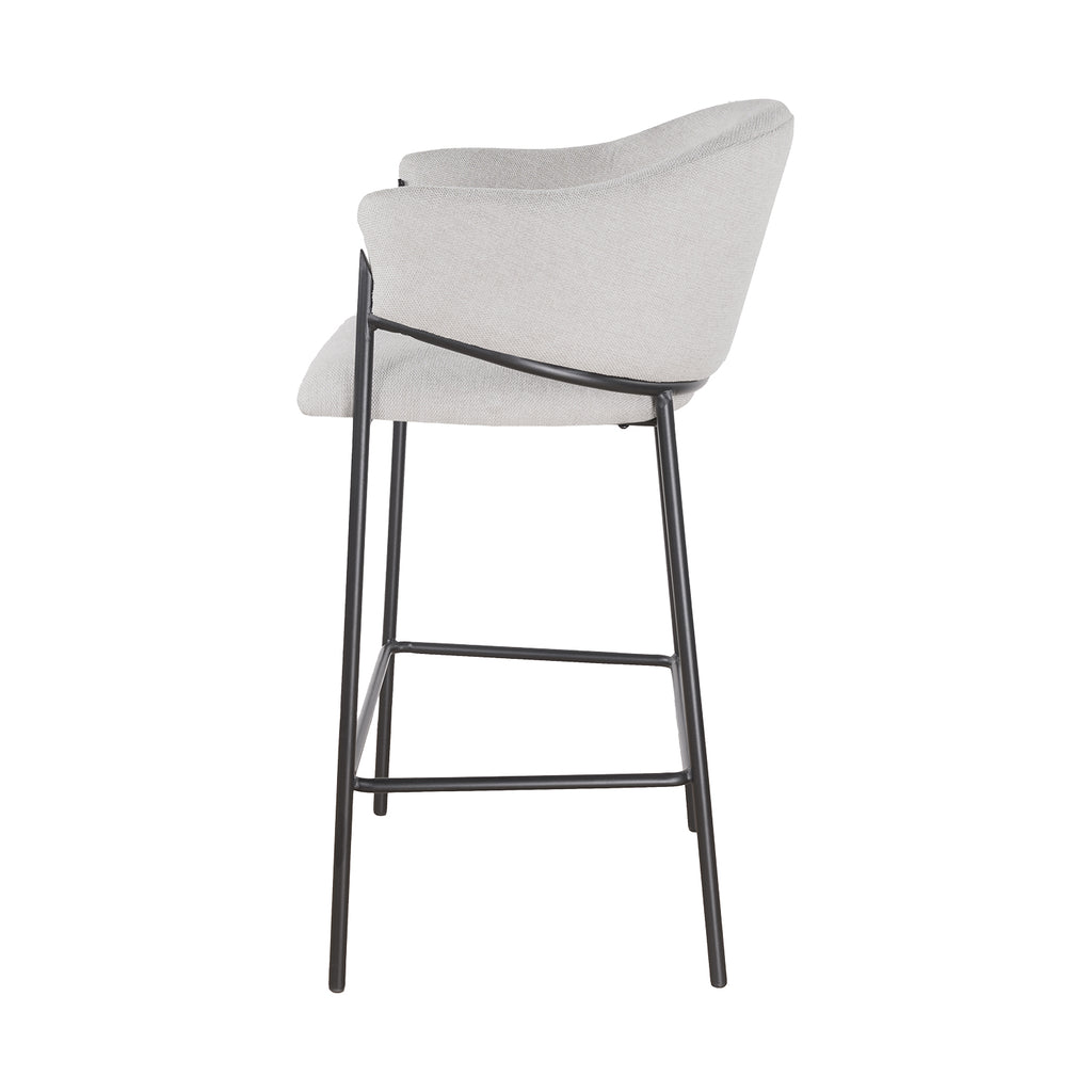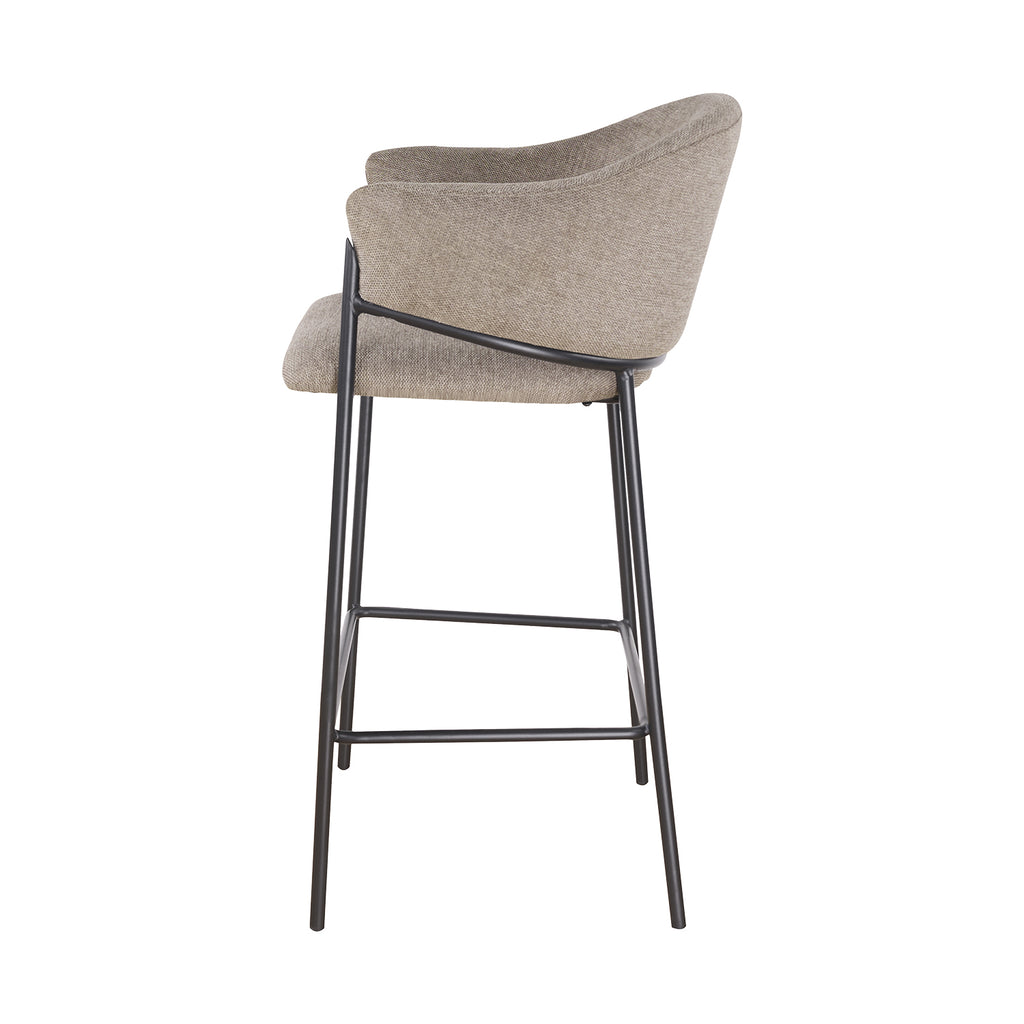 El asiento tapizado ofrece una textura suave y confortable, ideal para disfrutar de momentos largos en la barra o la cocina. Su diseño estilizado alarga visualmente el espacio, aportando equilibrio entre estética y funcionalidad.