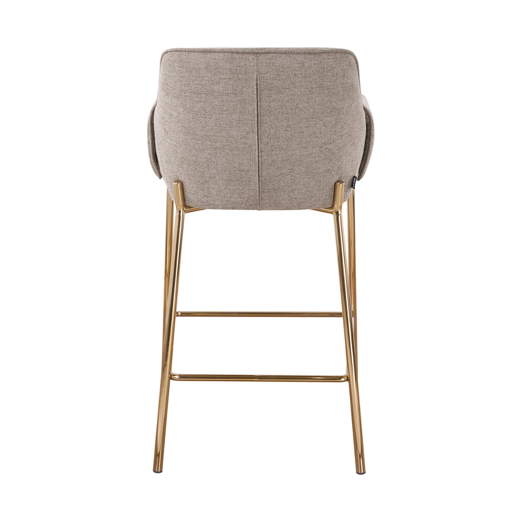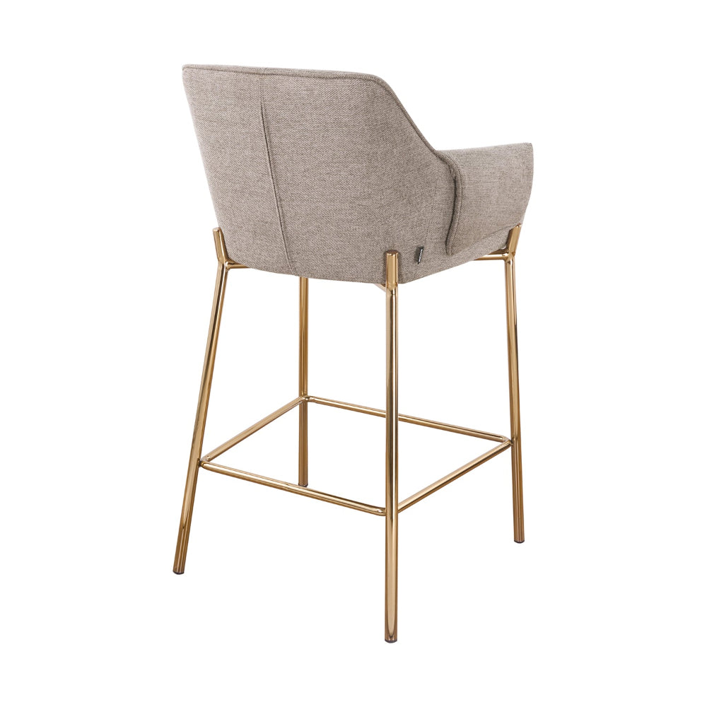 La estructura metálica con acabado dorado arenado añade un toque sofisticado que ilumina el espacio y eleva la atmósfera. Su presencia estilizada aporta equilibrio entre modernidad y calidez, convirtiéndolo en una pieza ideal para barras, comedores o áreas sociales contemporáneas.