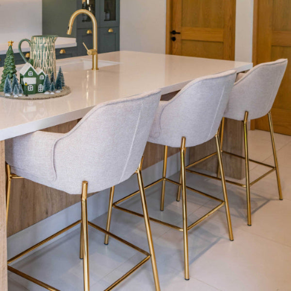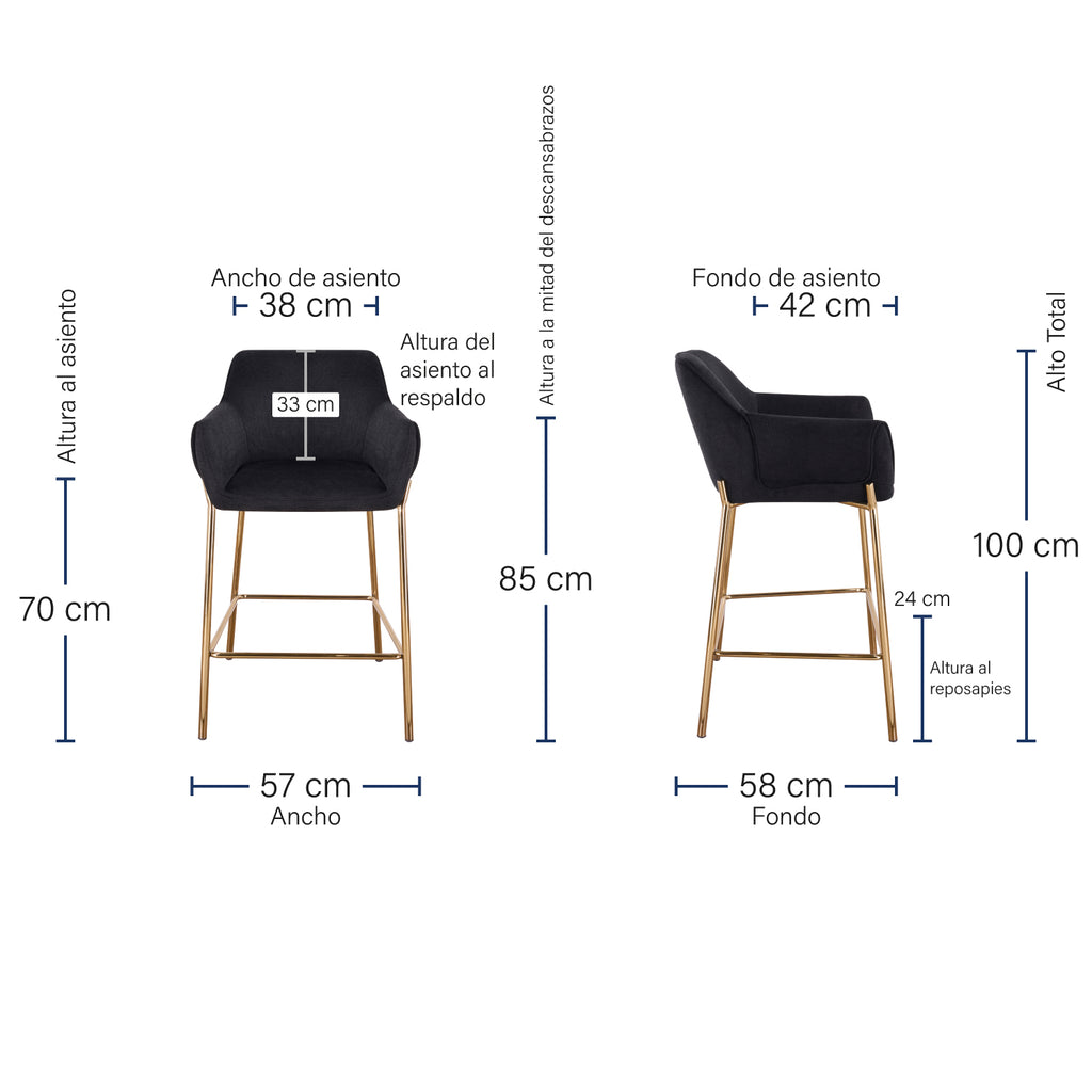 Completa tu espacio con la Silla Toronto Pata Dorada diseñada con el mismo tapizado Belfast y la estructura metálica dorada que distinguen al Banco Toronto. Juntas, ambas piezas crean una estética armoniosa, moderna y sofisticada que transforma cualquier comedor o barra con un estilo unificado y lleno de luz.