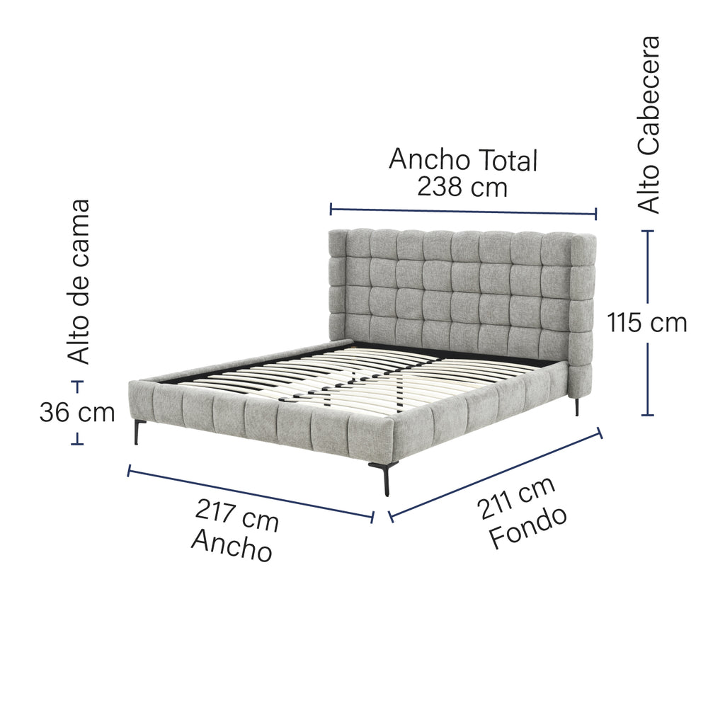 La Cama Toledo aporta un carácter moderno y equilibrado al dormitorio gracias a su diseño acolchado en bloques, una textura que aporta volumen, orden y un toque escultórico. Sus proporciones rectas, combinadas con bordes suaves, generan una estética limpia y armoniosa que luce bien en ambientes contemporáneos, minimalistas o de estilo más sobrio.