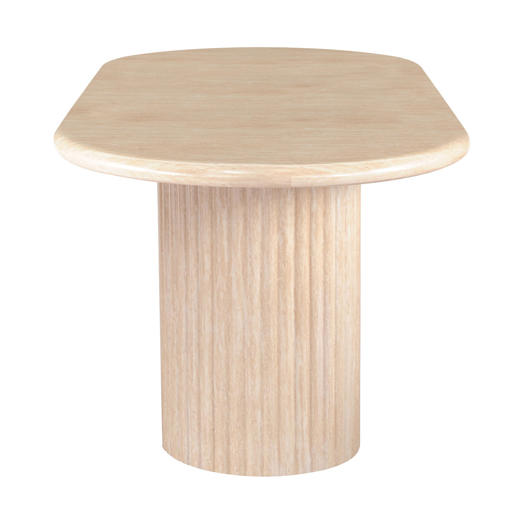 La mesa de comedor Riad es una pieza de mobiliario impresionante que destacará en cualquier comedor gracias a su estilo único y elegante. Con una superficie y patas de MDF en acabado estilo mármol travertino esta mesa es una combinación perfecta de materiales modernos y detalles clásicos.