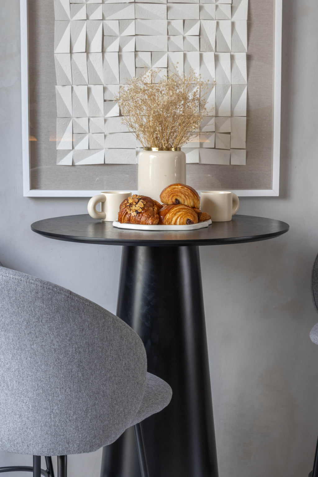 El detalle de su chapa de madera en color negro aporta un contraste elegante y moderno, convirtiéndola en una pieza decorativa que luce tanto en la cocina como en el comedor o incluso en el recibidor.