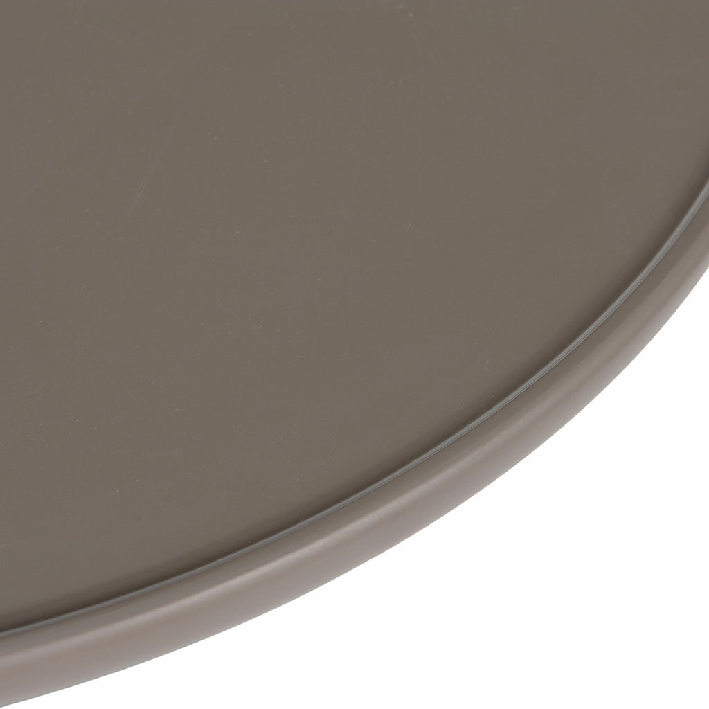 Su forma redonda suaviza el ambiente y aporta funcionalidad sin ocupar demasiado espacio. Ideal para colocar accesorios decorativos, bebidas, lámparas pequeñas o para acompañar un sillón protagonista. El acabado mate ofrece una textura visual sobria y moderna que se siente fresca y actual.