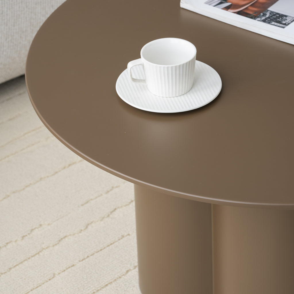 La Mesa de Centro Lisboa destaca por su forma redonda y proporciones equilibradas que aportan armonía visual a cualquier sala. Su base compuesta por tres pilares crea un efecto escultural y moderno, haciendo de esta mesa un punto focal elegante y atemporal.