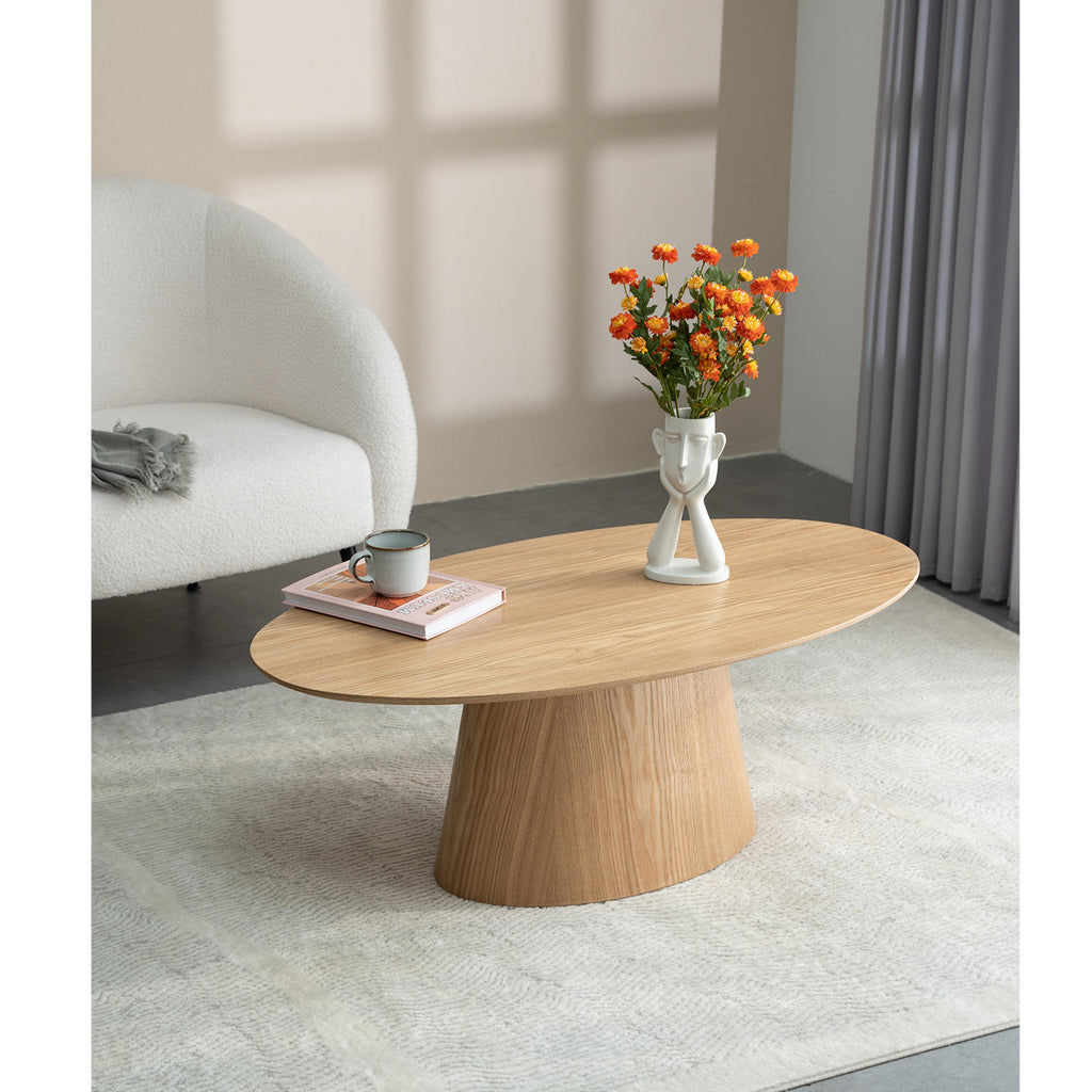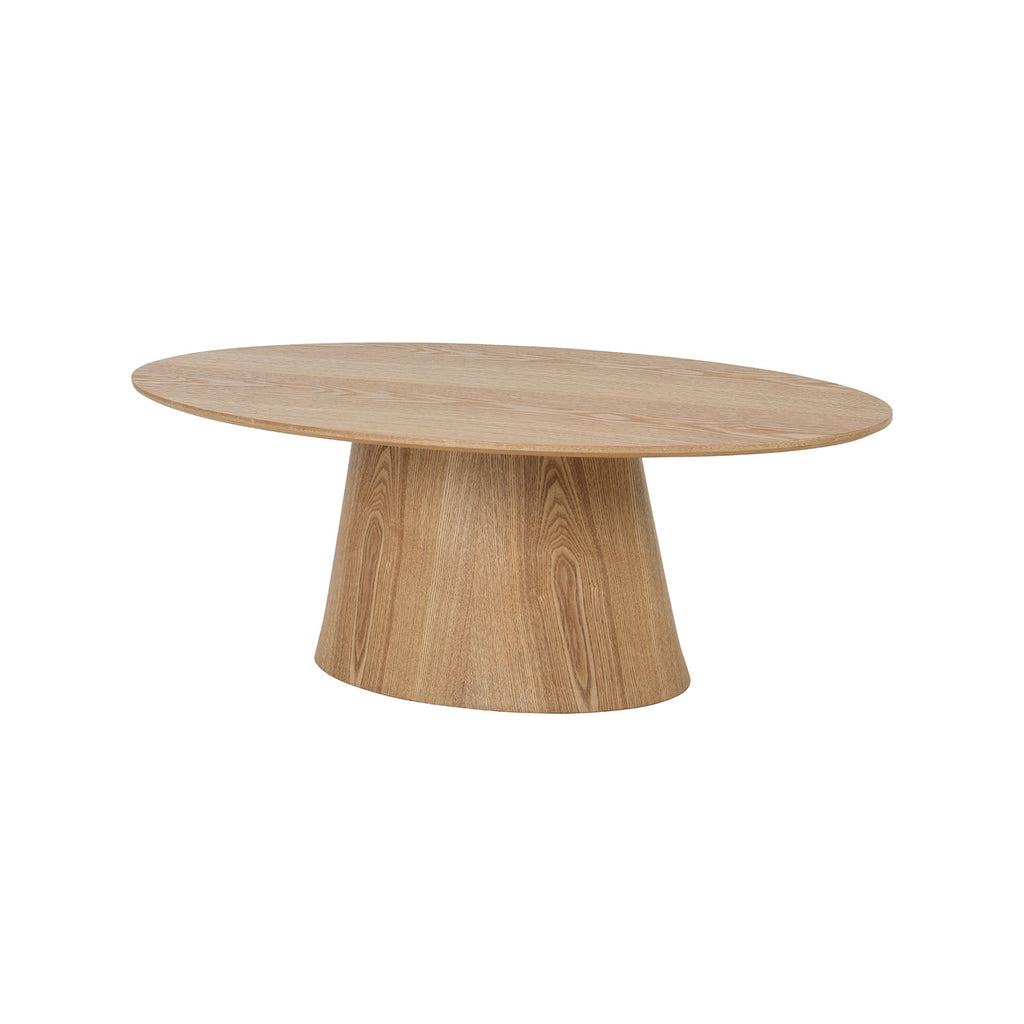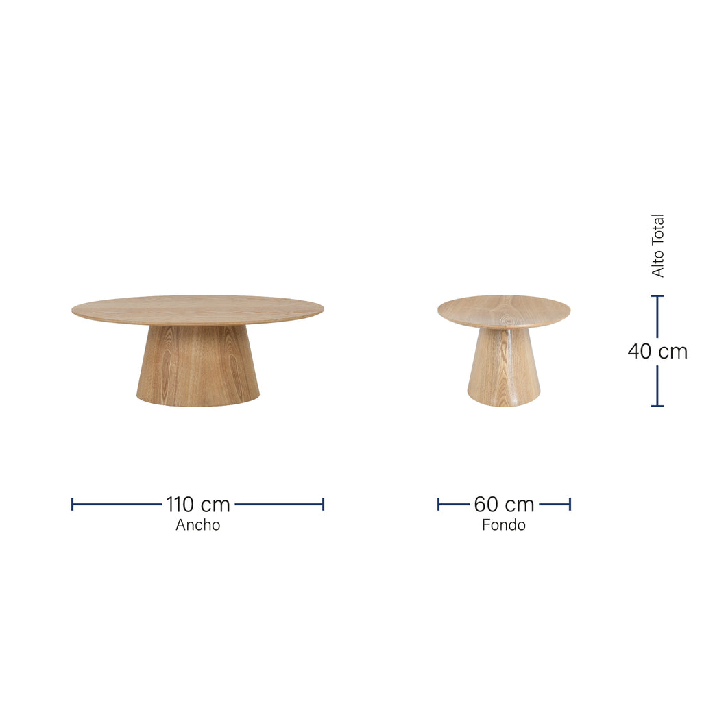 La mesa de centro Tokio destaca por su elegante diseño ovalado y su acabado tipo madera veteada, que aporta un toque de sofisticación natural a cualquier espacio. Perfecta como pieza central en salas de estar, combina funcionalidad y estilo moderno.