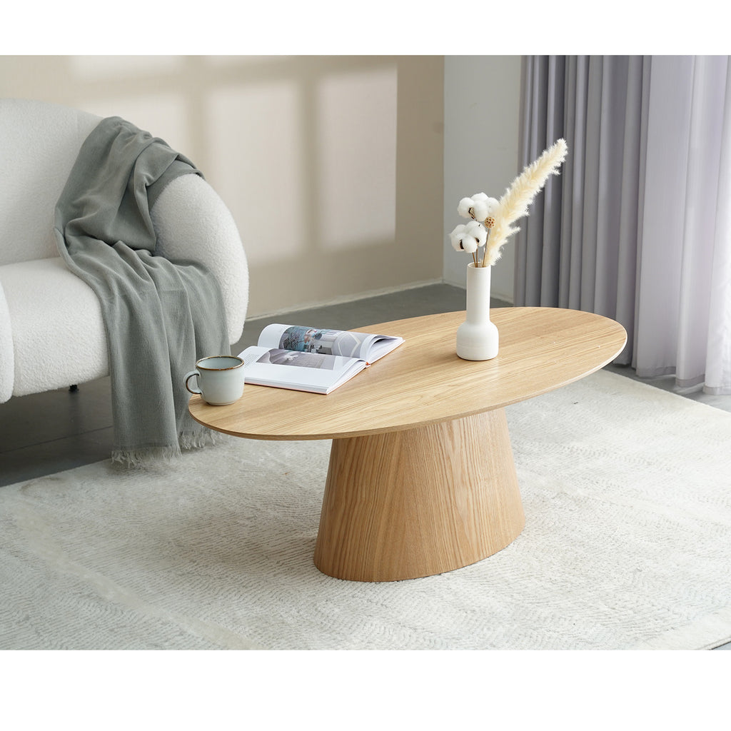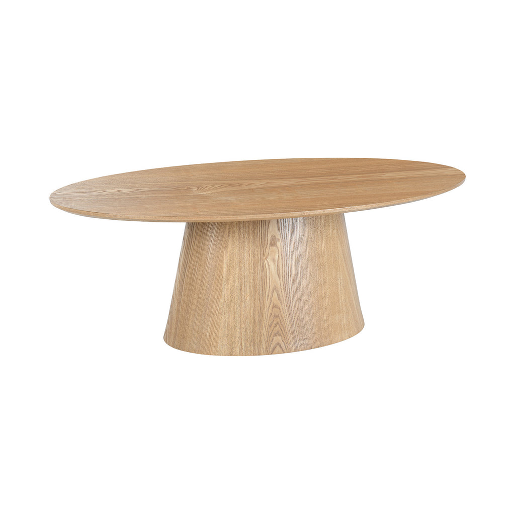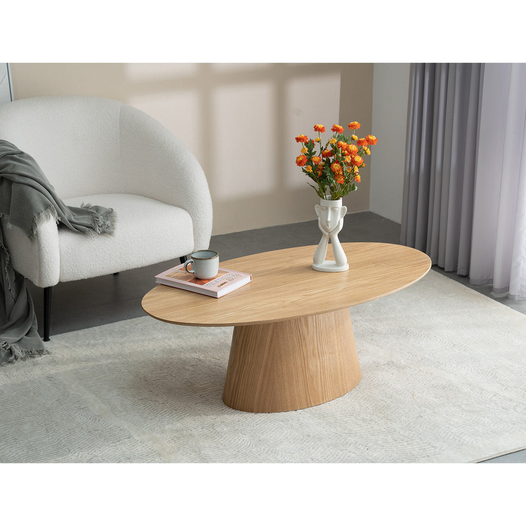 La mesa de centro Tokio destaca por su elegante diseño ovalado y su acabado tipo madera veteada, que aporta un toque de sofisticación natural a cualquier espacio. Perfecta como pieza central en salas de estar, combina funcionalidad y estilo moderno.