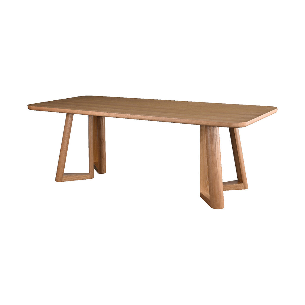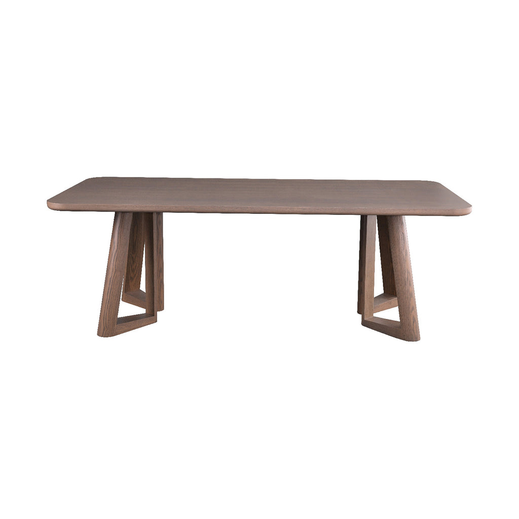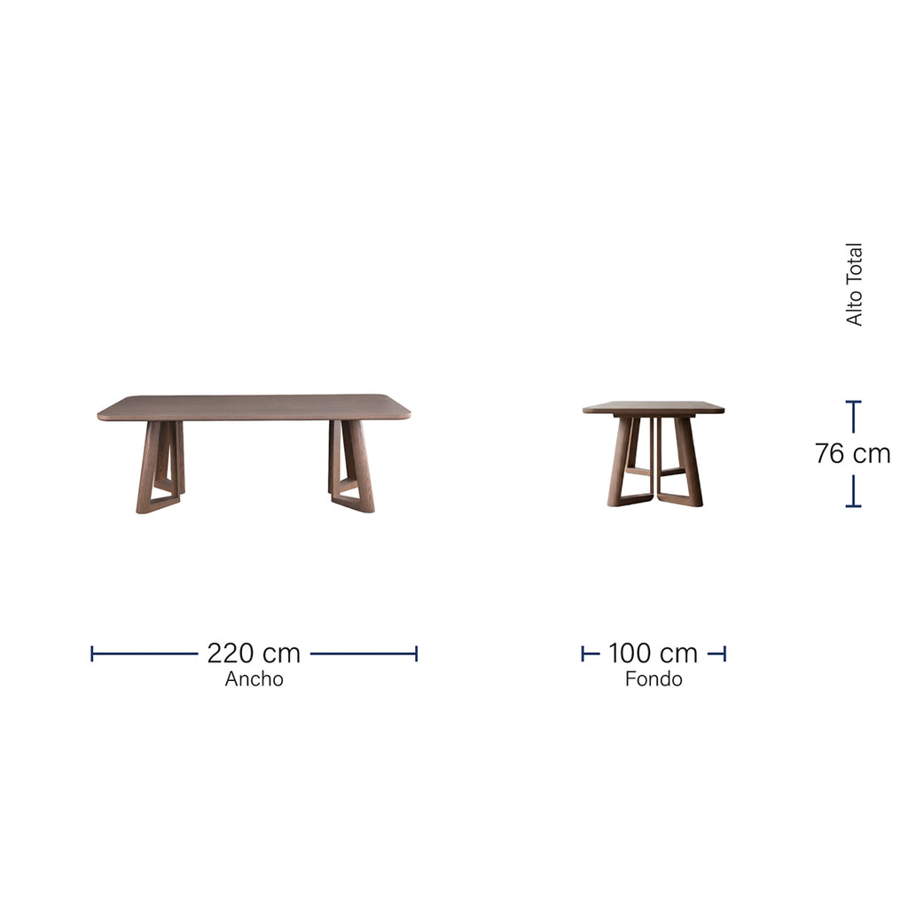 Sus patas angulares de corte preciso y su estructura sólida evocan un carácter arquitectónico que aporta estabilidad y protagonismo. Su cubierta con acabado de alta calidad resalta la belleza natural de la madera, convirtiendo a la Jaipur en el corazón visual de cualquier comedor contemporáneo.