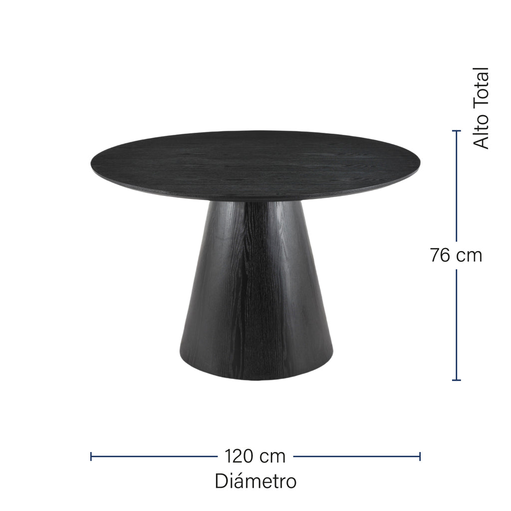 La mesa de comedor Laredo es una pieza única de mobiliario que combina una elegancia sobria con una armonía visual excepcional. Con su superficie redonda y su base de forma cónica, esta mesa es un verdadero centro de atención.