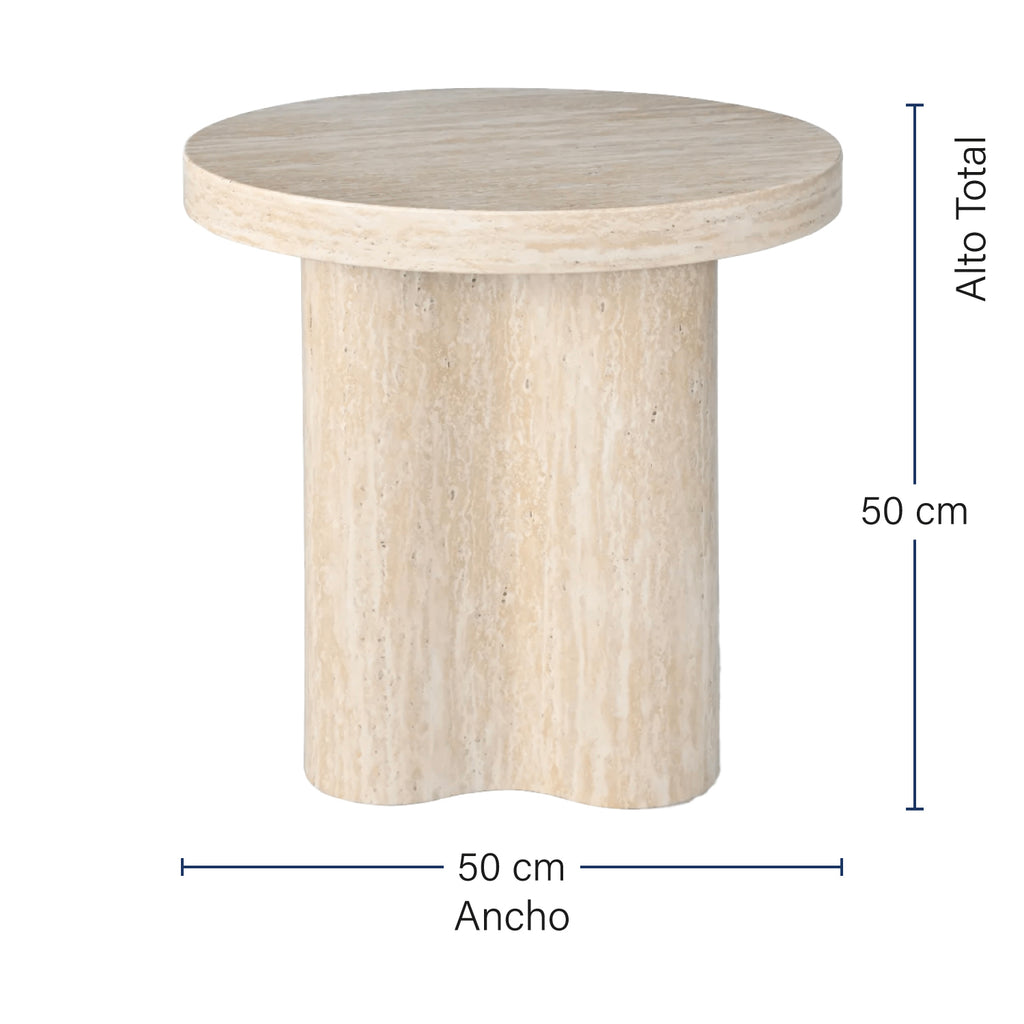 Gracias a sus proporciones compactas, la Mesa Lateral Río se integra con facilidad en salas, recámaras o espacios de descanso, adaptándose a distintos estilos sin perder identidad.