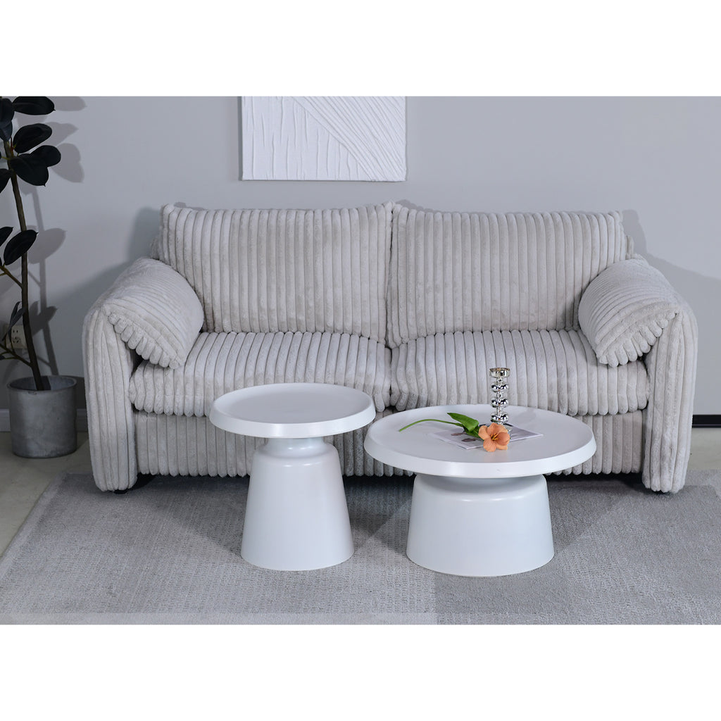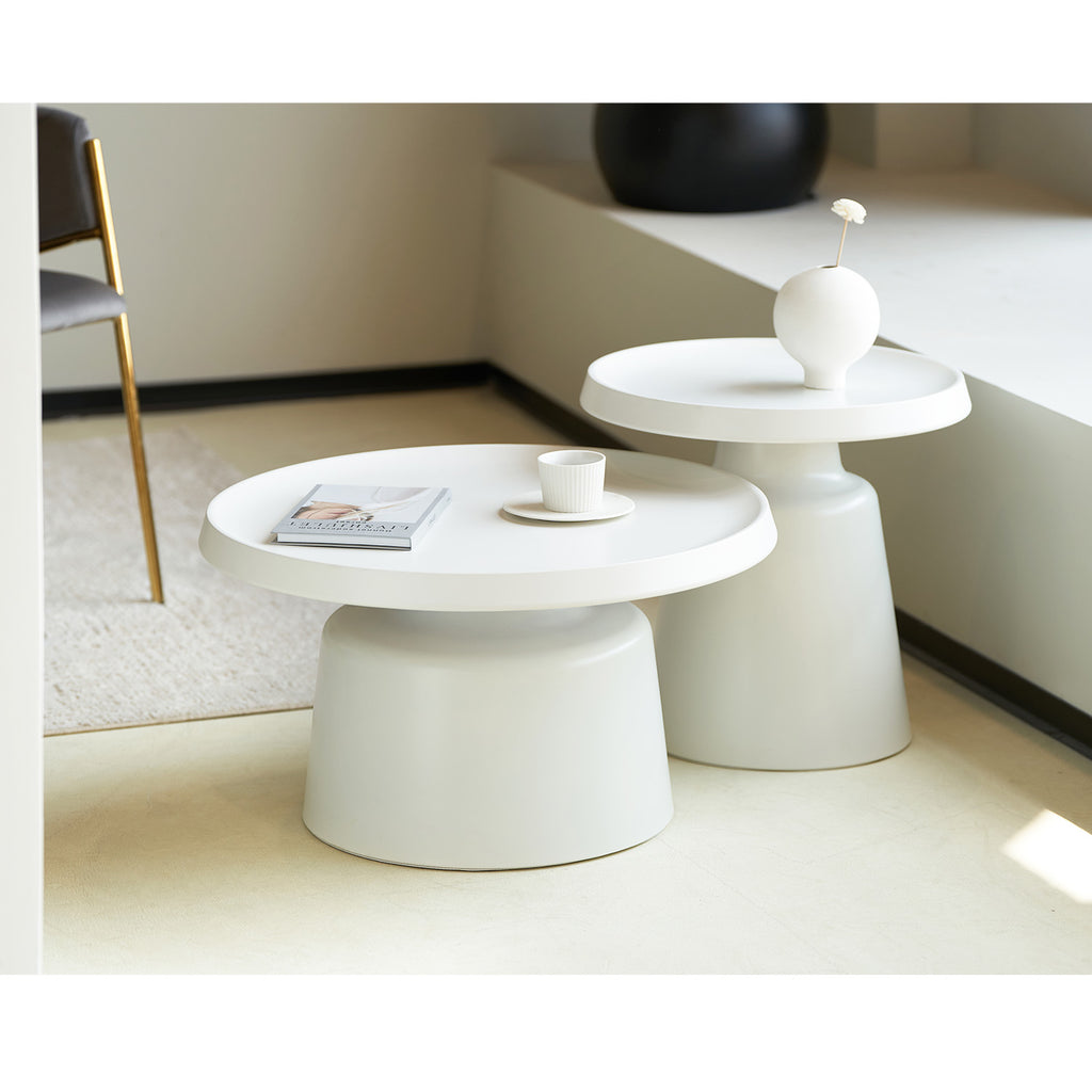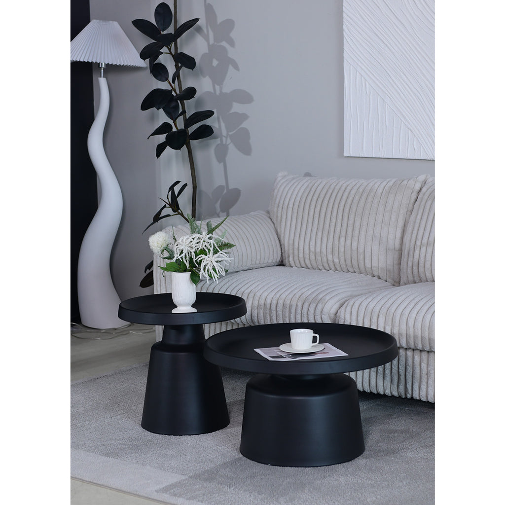 El set de 2 mesas de centro Sintra es la combinación perfecta de funcionalidad y estilo contemporáneo. Con diferentes alturas y diámetros, estas mesas se complementan entre sí para ofrecer practicidad y un diseño único que realza cualquier espacio.
