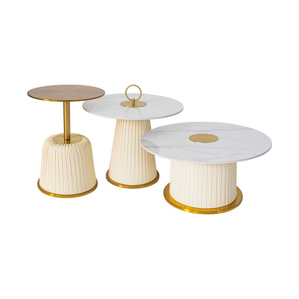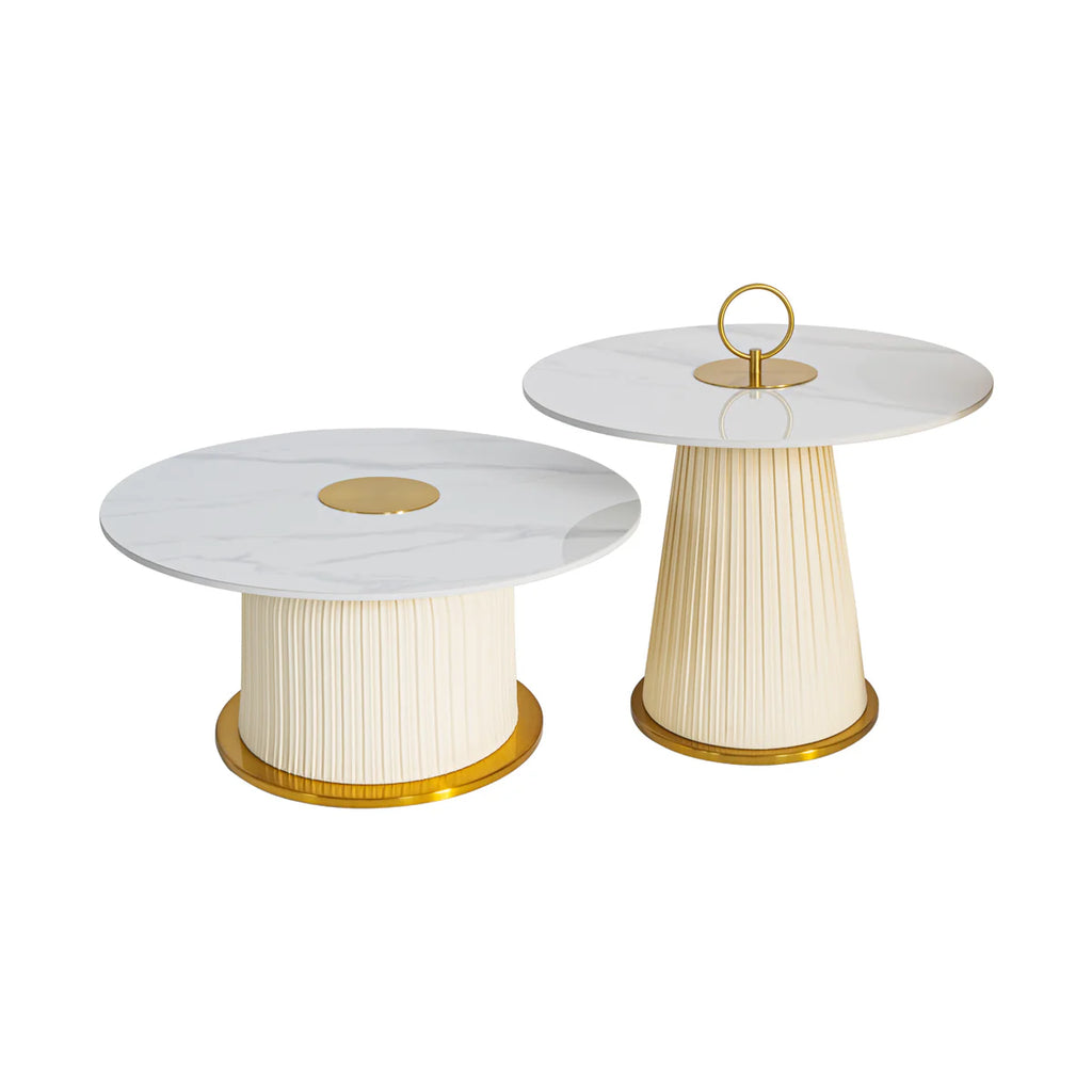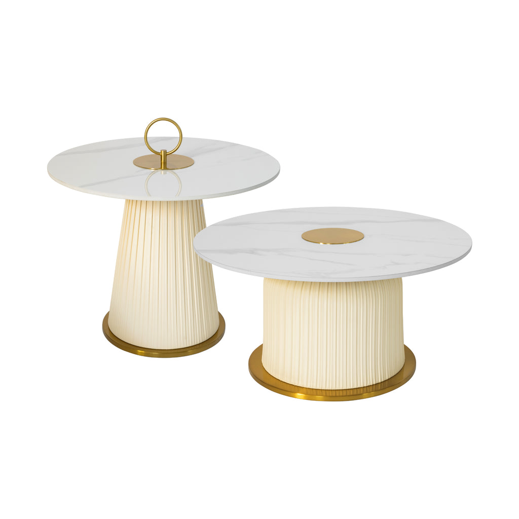 Este set de 2 Mesas de centro Monaco es la perfecta adición a cualquier espacio elegante. Con una base metálica resistente y una cubierta de cerámica, estas mesas no solo son duraderas sino también elegantes. Disfrute de la decoración de PU en color marfil que añade un toque sofisticado a su hogar.