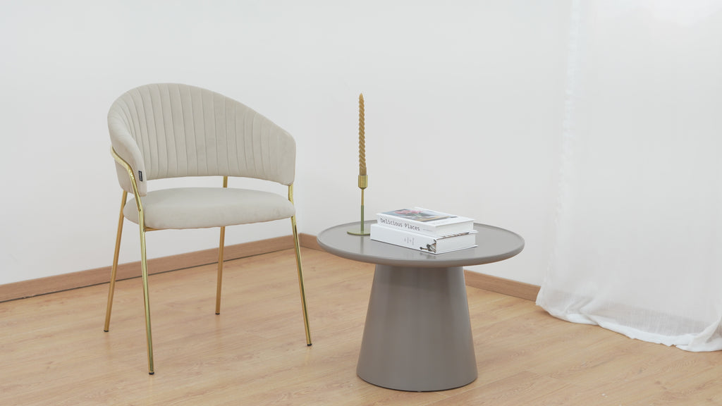 La Silla Bilbao es una pieza que combina diseño y sofisticación en perfecta armonía. Su estructura metálica en tono dorado y su tapizado en tela tipo velvet de tonalidades suaves —taupé, marfil, verde, gris y negro— reflejan una elegancia contemporánea que se adapta con facilidad a diferentes estilos de decoración. Cada color aporta una personalidad distinta, pero todos comparten una base cálida y cremosa que irradia confort visual.