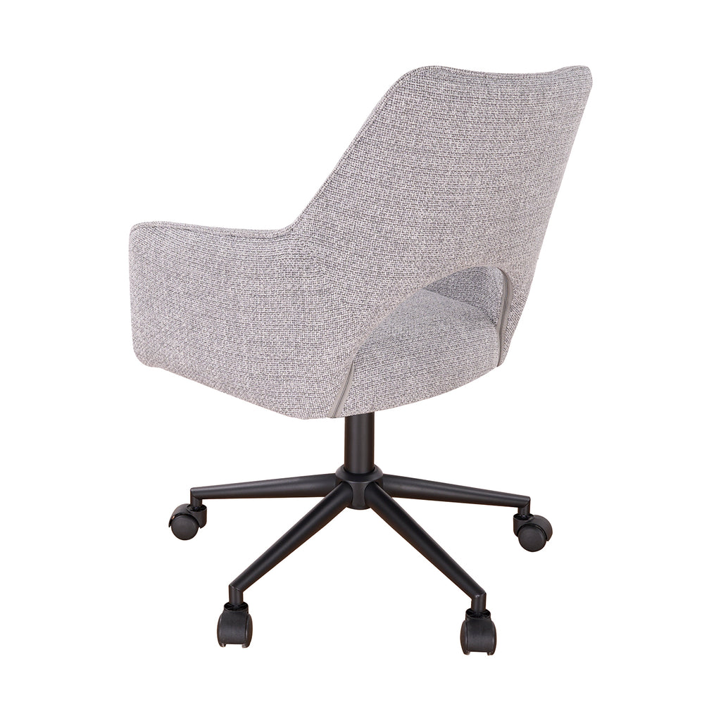 Gracias a su función giratoria de 180°, permite una mayor movilidad y libertad de movimiento, facilitando el desplazamiento por el área de trabajo sin esfuerzo y reduciendo la necesidad de movimientos forzados. Además, su diseño ofrece libertad de movimiento sin perder estabilidad, ideal para entornos dinámicos y colaborativos. La base con ruedas garantiza resistencia y un perfil moderno.
