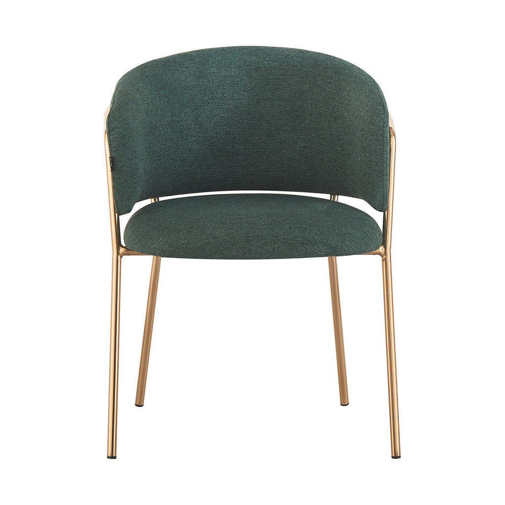 Sumérgete en el encanto de la Silla Escocia, una elección sublime para embellecer tu comedor. Con un diseño vanguardista y una estructura de acero cromado en un resplandeciente tono dorado, sus formas curvas no solo añaden un toque de opulencia, sino que también aseguran una experiencia de comedor ergonómica y placentera.
