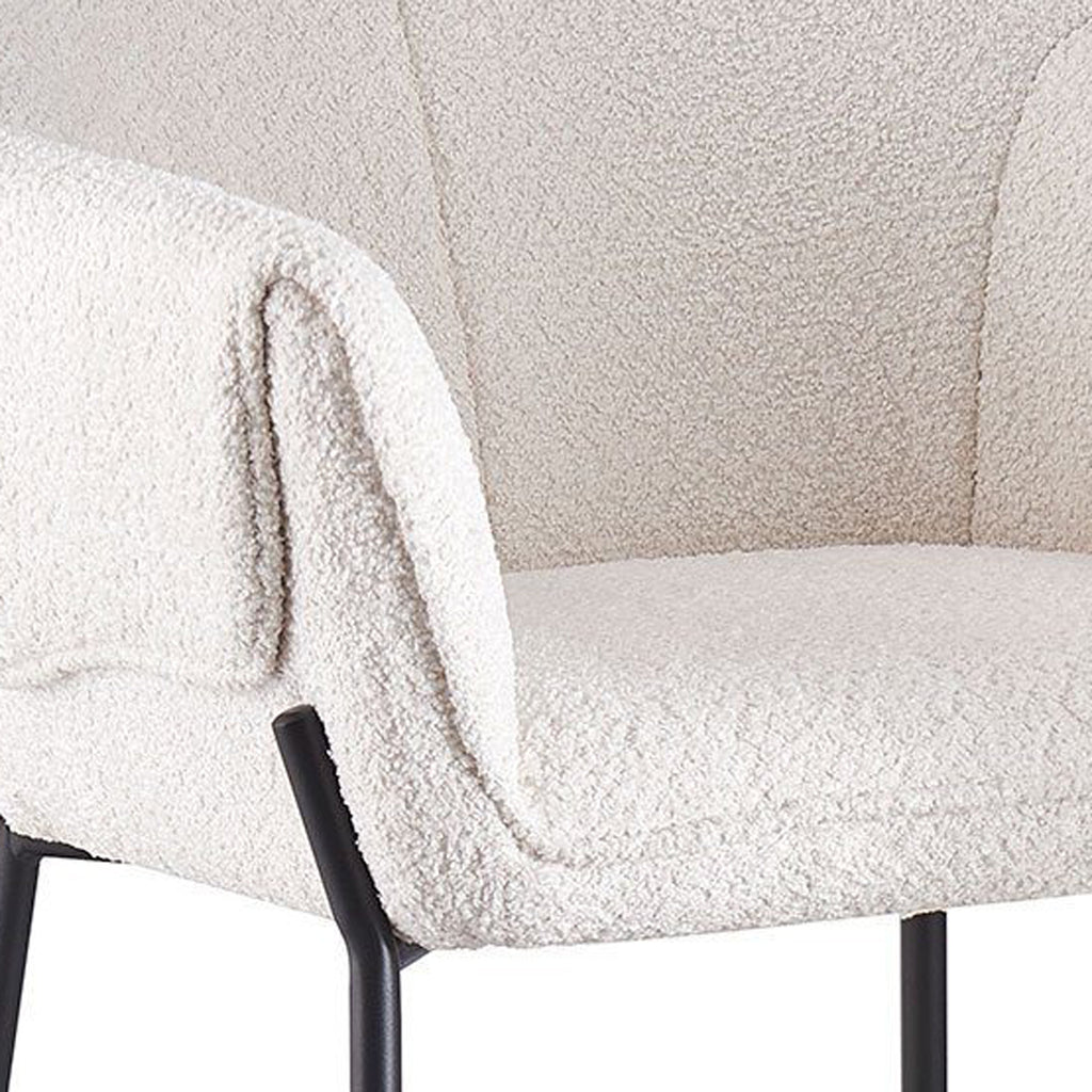 La silla Toronto es una silla moderna y elegante que combina a la perfección diseño y comodidad. Su asiento y respaldo de tela tipo boucle ofrecen una sensación suave y agradable al tacto, mientras que los reposabrazos dobles brindan una posición relajada para tus brazos. Además, su base de metal con acabado de recubrimiento en polvo negro garantiza su durabilidad y resistencia.