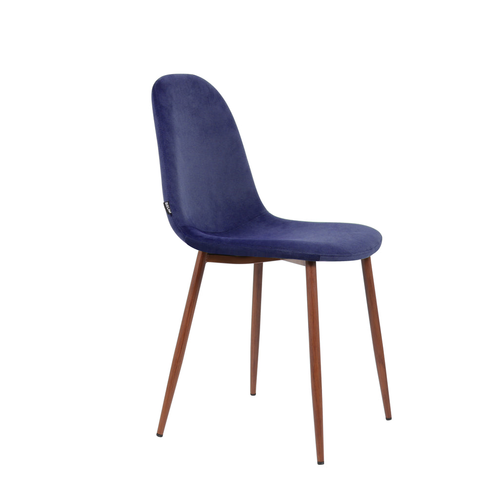 Una robusta estructura de metal en acabado cromado le da a la silla una postura estable. Las patas han sido terminadas en un aspecto madera de nogal.