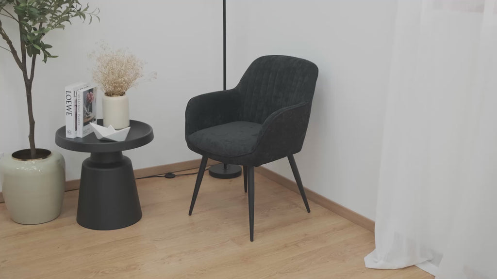 La silla Manchester es increíblemente cómoda. Su diseño ergonómico proporciona un soporte lumbar excepcional y está construida con materiales de alta calidad para garantizar su durabilidad. Sus patas de recubrimiento en polvo arena negra son resistentes y añaden un toque de elegancia.