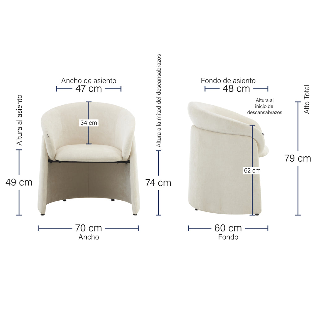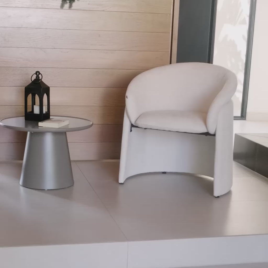 La base metálica oculta y los detalles en acero negro aportan estabilidad reforzada y un acabado visual uniforme. Su forma continua y compacta logra equilibrio entre robustez y elegancia, convirtiendo al Sillón Ibri en una pieza moderna y atemporal.