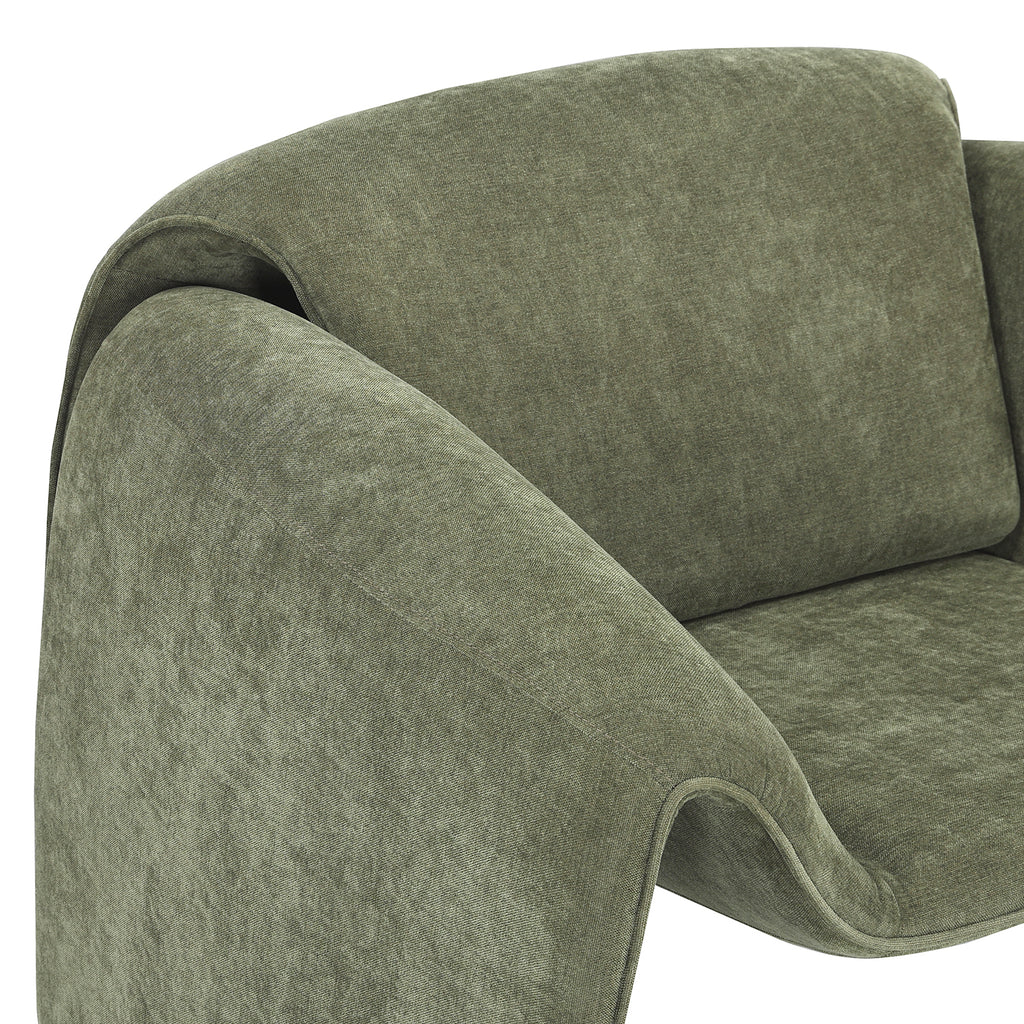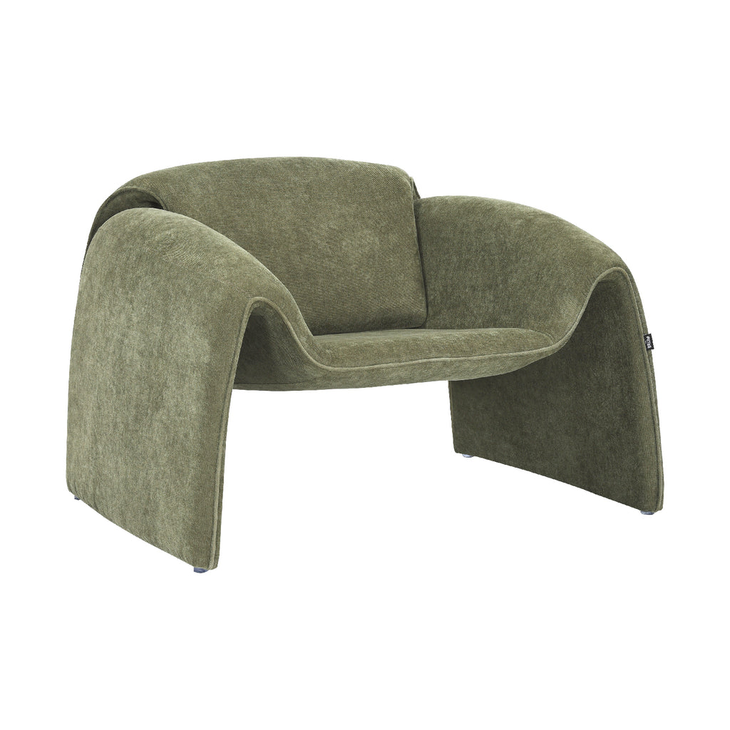 Su forma escultórica y proporciones equilibradas lo convierten en el protagonista del ambiente. Tapizado en tela de alta calidad, combina una textura suave con una estructura sólida de acero que garantiza estabilidad y durabilidad.