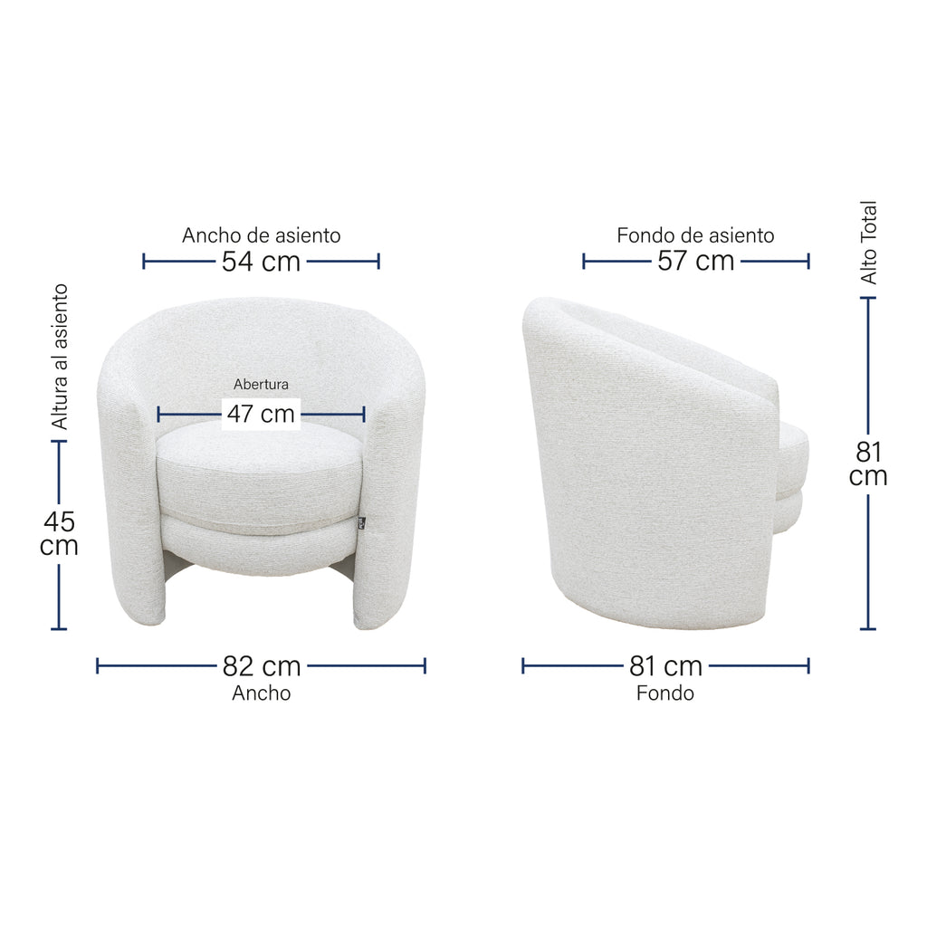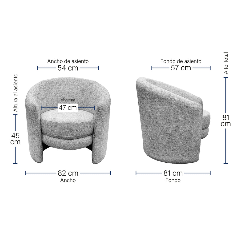 El tapizado en tela de alta calidad ofrece una textura suave al tacto, a la vez que es resistente y duradera. Este sillón es una pieza ideal para quienes buscan una opción moderna y cómoda sin sacrificar elegancia en su mobiliario.