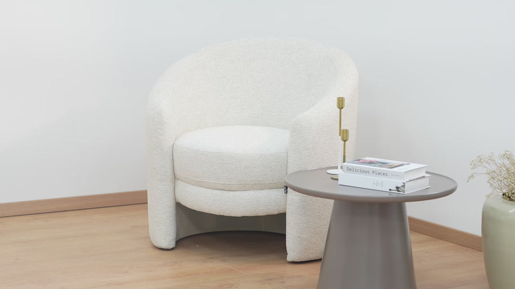 Este sillón presenta un diseño contemporáneo y elegante, con un respaldo semicircular que envuelve suavemente al usuario, brindando una experiencia de confort excepcional. Sus líneas limpias y su estructura abierta le otorgan un aspecto moderno y sofisticado, perfecto para espacios que buscan equilibrio entre estilo y funcionalidad.