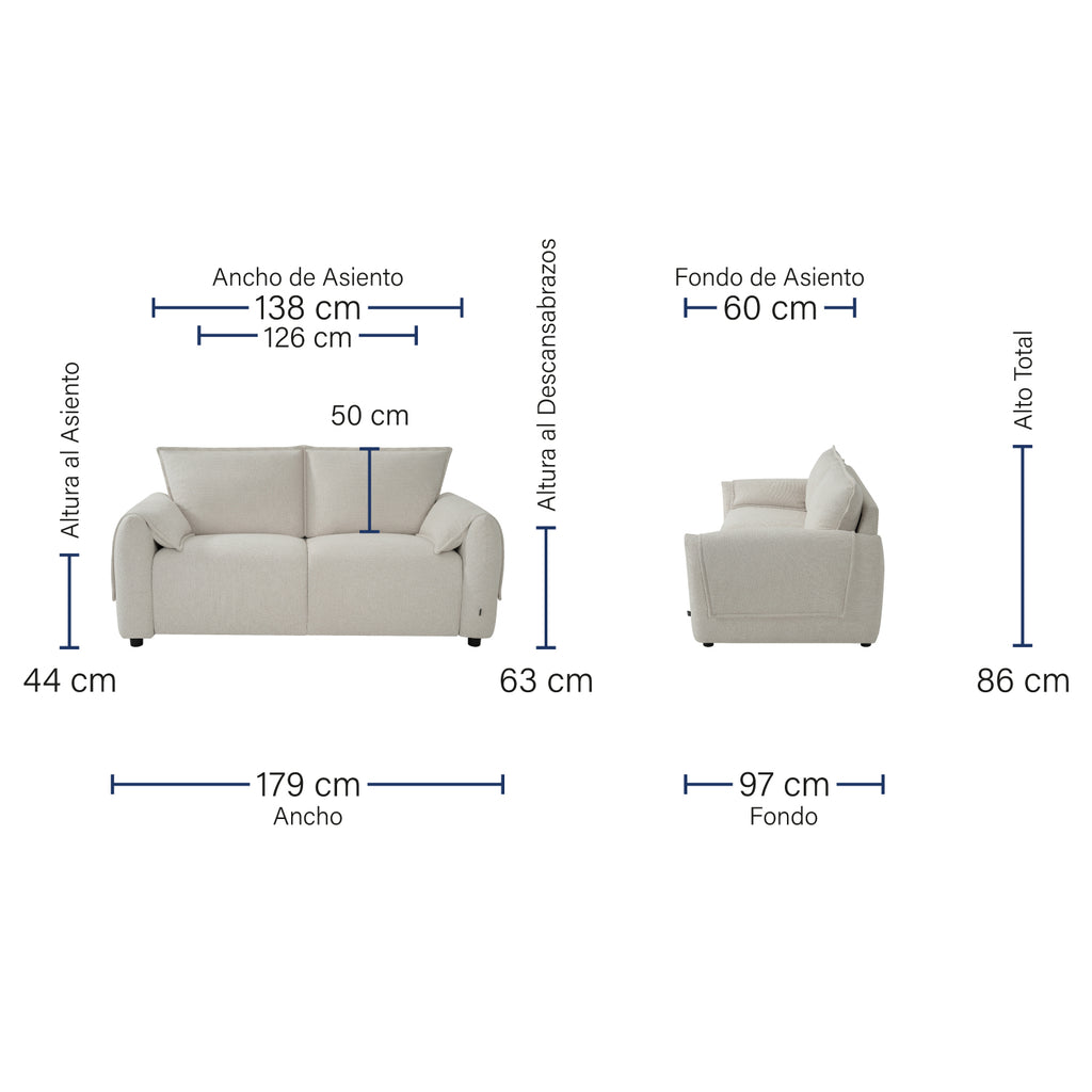 Opciones de Tamaño: Disponible en dos versiones: de dos plazas y de tres plazas, adaptándose a diferentes necesidades y tamaños de habitación.