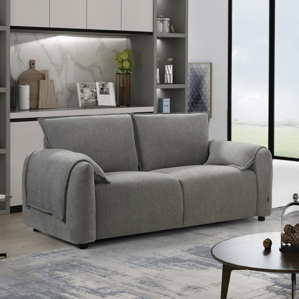 Aspecto Moderno: El Sofá Malmo presenta un diseño contemporáneo con descansabrazos únicos. Un suave almohadón se desliza a través del borde del sofá, formando un cómodo descansabrazos que le da un look elegante y chic.