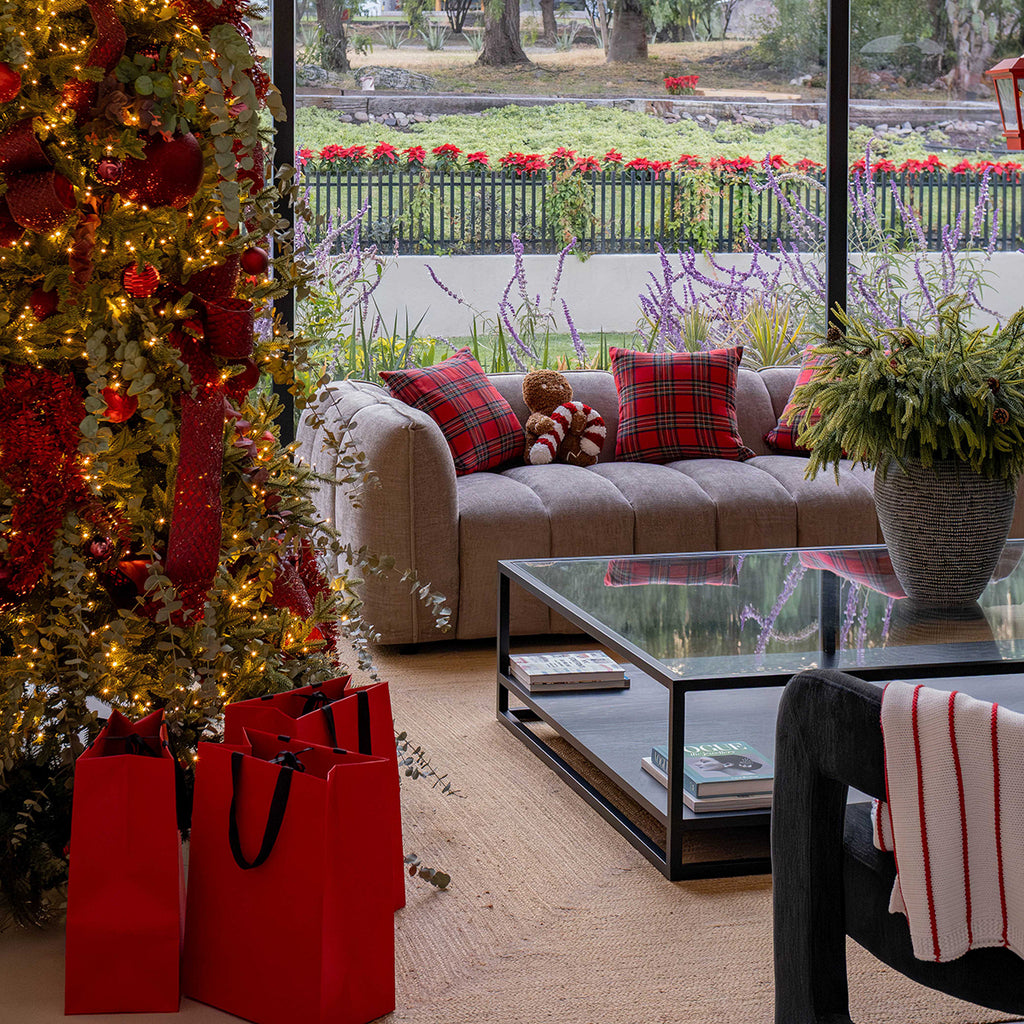 El Sofá Milán se ve espectacular acompañado de la Mesa de Centro Brisbane La forma orgánica e irregular de la mesa aporta dinamismo y contraste visual —la rigidez lineal del sofá se suaviza con las curvas de la Brisbane— creando un ambiente moderno, equilibrado y lleno de estilo.