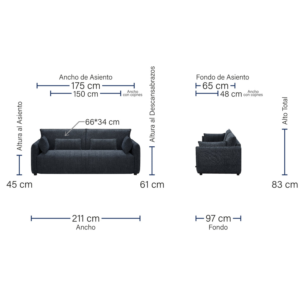 Opciones de Tamaño: Disponible en dos versiones: de dos plazas y de tres plazas, adaptándose a diferentes necesidades y tamaños de habitación.